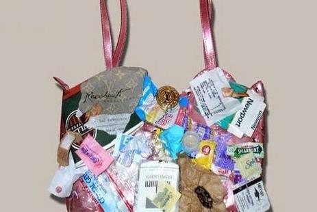 非常另类的一款包包,一度被人们称为史上最丑的包包之一,不过这种另类的奢华对于多金的年轻名人却极具吸引力。包包采用世界上最好的意大利皮革纯手工制作,包身点缀着你能想像到的各种城市垃圾:烟头、茶叶包、矿泉水瓶、创可贴、烟盒、口香糖…。设计师将其称为精心选择的“城市符号”。