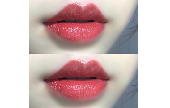 西柚粉色,就像新鲜的西柚一样的颜色,非常显白很提气色,是很少女的一个颜色,看似对黄皮不友好,但是上嘴都却意外的合适,半哑光质地,还算滋润,持久度也不错,薄涂偏粉,显青春,厚涂会与唇膏本身颜色非常接近,显气质。