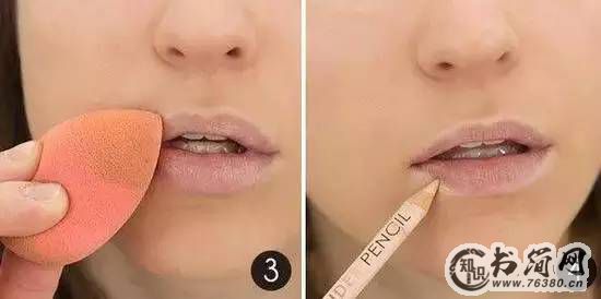 Step4:用遮瑕笔勾勒出唇部轮廓,之后用手指指腹将它稍稍晕开,这样在上唇膏时可以避免你的口红画出边缘,能够帮助你的唇部轮廓显示的超级清晰。