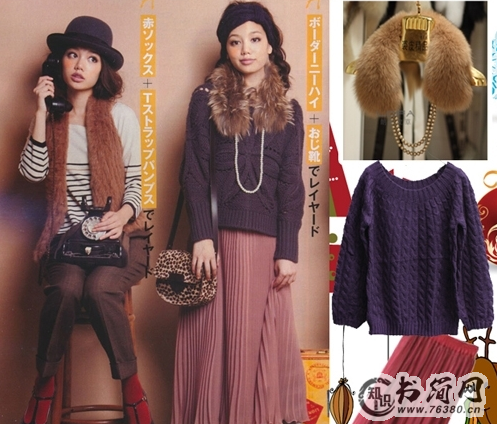 毛毛珍珠假领子今年非常热哦,不少MM都带上它搭配毛呢外套大衣,很显雅致,一条毛毛珍珠假领子搭配复古宝蓝色宽松毛衣的搭法非常IN ,有点小女人名媛感,而玫瑰色纱裙颜色上很淑女,搭配条纹长筒袜或者打底裤非常淑女。