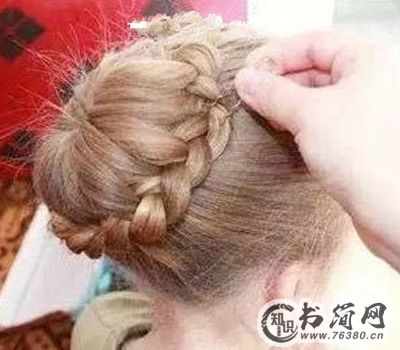 7、在围绕马尾完成一圈的编织后,将剩下的头发编成一条三股辫。