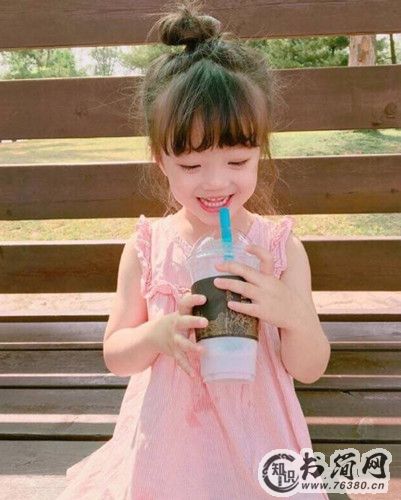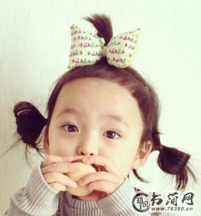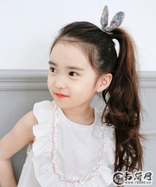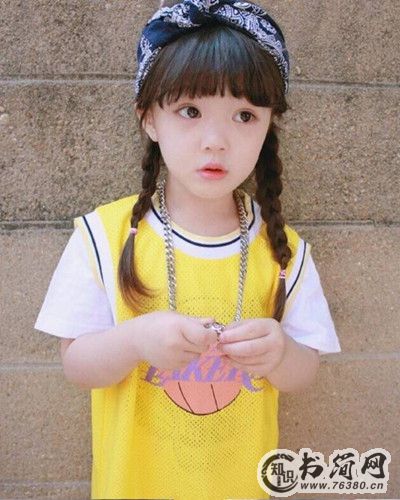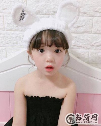 这一款小女孩扎发也超萌Q的,用一款内扣的空气刘海搭配一款简单低马尾,不仅能凸显出小女孩明亮的大眼睛,而且挺粉嫩有范儿。再戴一款可爱的兔子帽子,轻松就萌化众多阿姨粉。