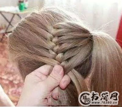 4、再次从前额和马尾中分出小股头发,顺次编织。