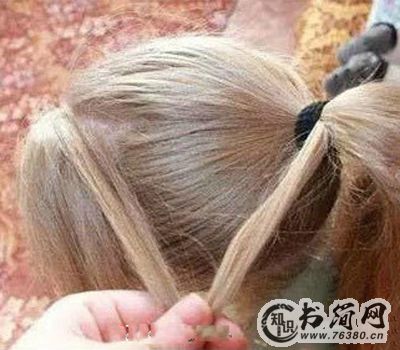 3、再从马尾中分出一股头发,按普通的方法开始编织三股辫。