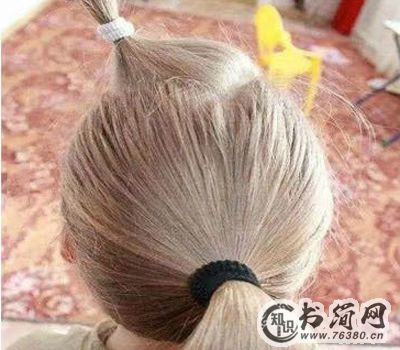 1、首先在头顶留下一小部分头发,将剩下的头发在脑后束成马尾。