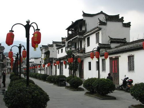 傍水,与亭、台、楼、阁、塔、坊等建筑交相辉映,构成“小桥、流水、人家”的优美境界。黟县宏村,背靠古木参天的雷岗山,前临风光旖旎的南湖,傍依碧水萦回的浥溪河,整个村落设计成牛形,景色极为秀丽,有“中国画里的乡村”之称。徽州古民居,多为三间、四合等格局的砖木结构楼房,平面有呈口字、凹字、日字、字母H等几种类型。