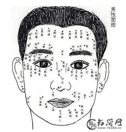 男孩面部痣相图解大全:男人面部痣相图解凶吉大全