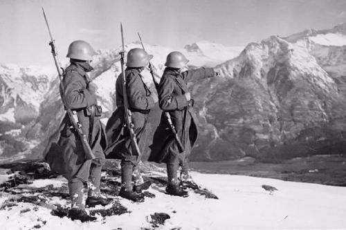 当时瑞士总人口只有4000,000人,却在二战期间动员起了850000名士兵严阵以待,这些士兵借助瑞士是处于阿尔卑斯山脉的地理,将瑞士护卫成了一个巨大的碉堡。