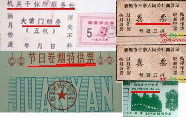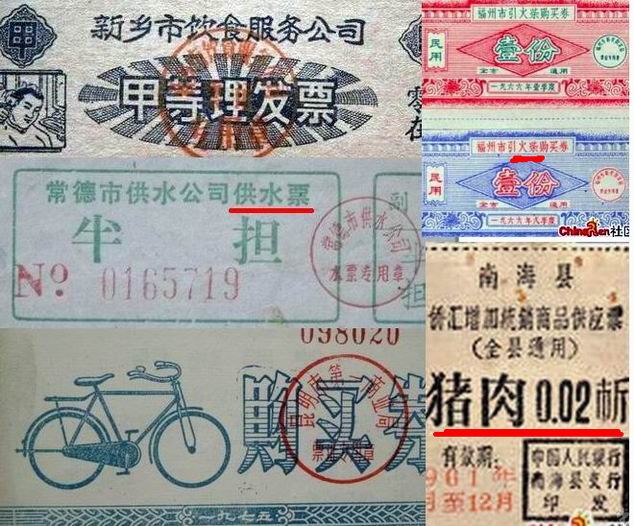 对于我们这些年过半百的中老年人,最难忘的是温饱问题尚未解决的毛时代。那时实行的是计划经济,生产力水平低下、人民生活拮据,很多日用品和食品都要凭票证按计划供应。比如,购粮要粮票,买布要布票,买油要油票,买肉要肉票,一些紧缺的手表、自行车等日用品不仅要票,有的还要外汇卷,可以说人们生活中所必需的东西不要票的几乎没有。