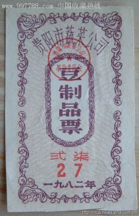 豆制品票(1982)