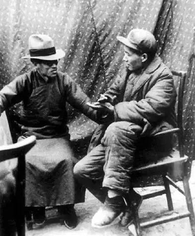 1938年1月,毛泽东在延安会见来访的梁漱溟。