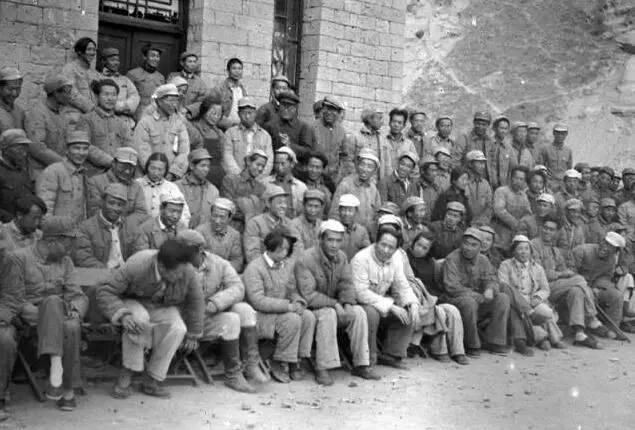 1942年5月,中共中央召开延安文艺座谈会,这是毛泽东、朱德等与参加延安文艺座谈会的代表们合影。