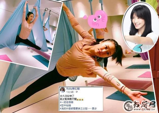 林心如素颜练空中瑜伽