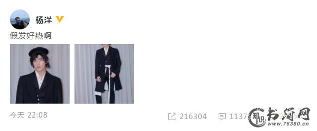 不过,戴着假发的杨洋好像感觉有点热,于是乎就发文吐槽戴着假发好热啊,看来艺术家也不是那么好当的。