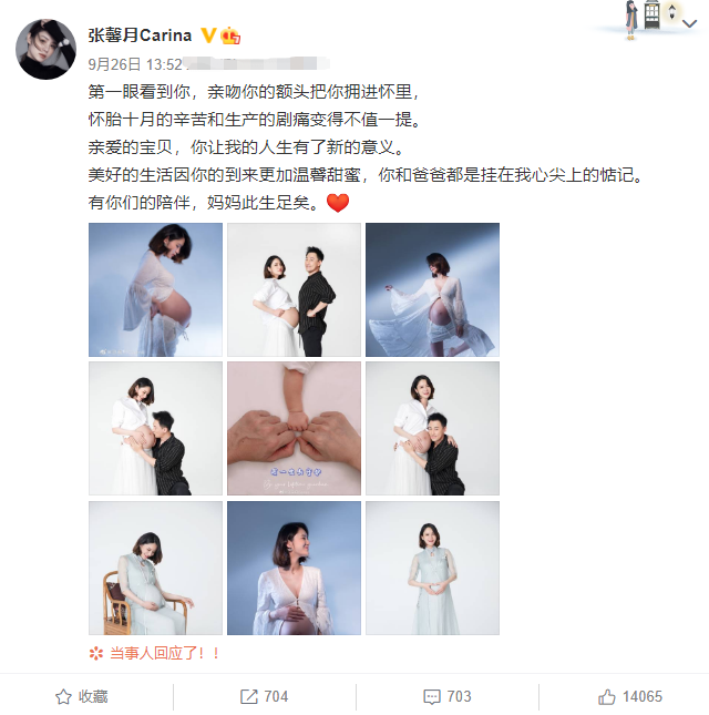 据悉,张馨月与林峯于今年9月底发文宣布已经生下孩子,据知情人透露二人的首个宝宝生的是女儿。